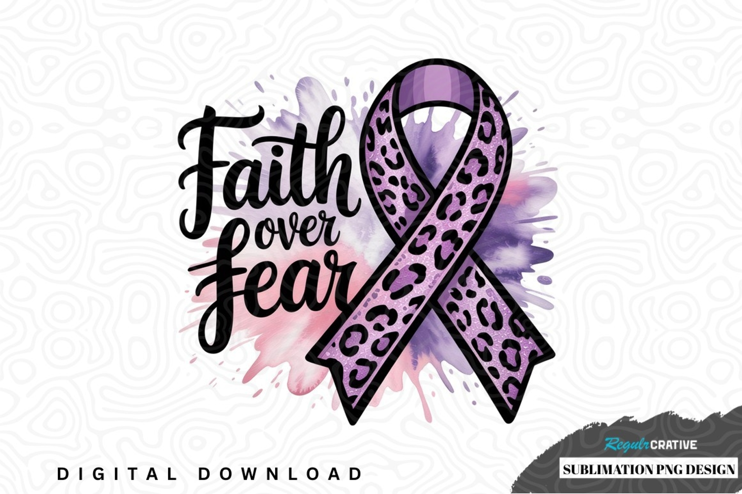Leopard Print Awareness Ribbon T-shirt Design Motivational Quote Faith Over Fear Inspirational Design Purple Ribbon Sublimation Png Awareness Ribbon Design Leopard Print Ribbon