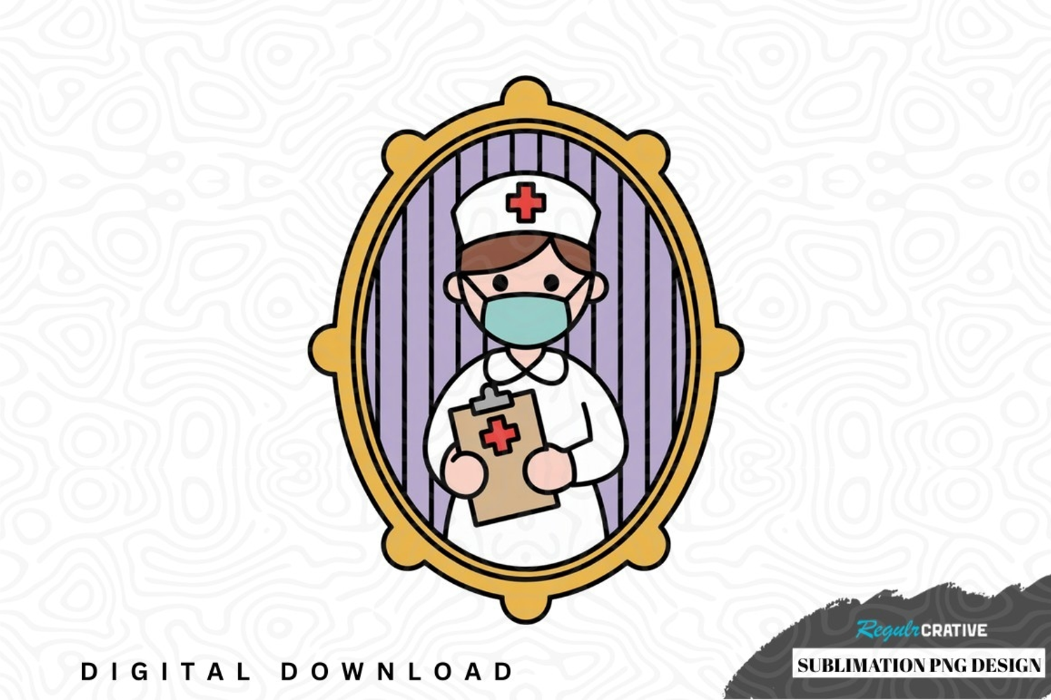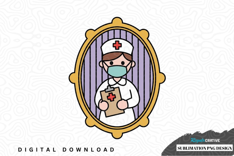Illustration Cartoon Healthcare Nurse Mask Medical Clipboard Sublimation Golden Frame Red Cross
