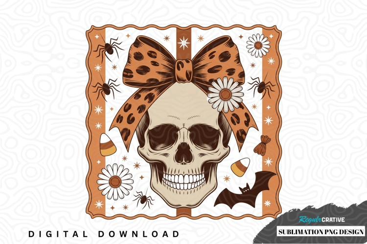 Similar Design Products to Halloween skull with leopard print bow sublimation png