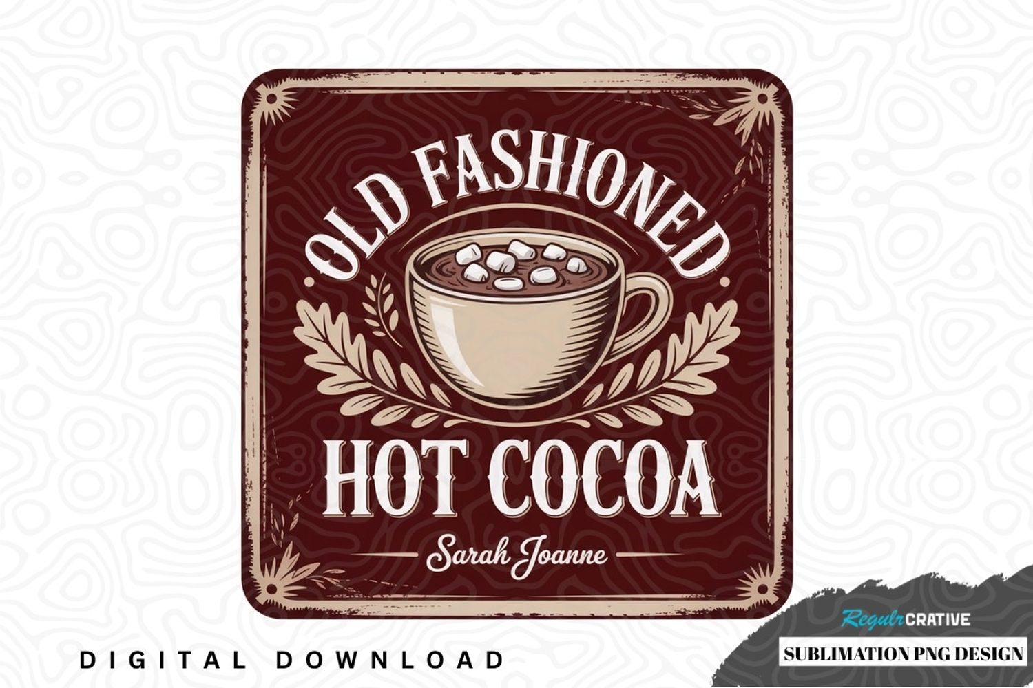 Old fashioned hot cocoa sublimation png design was created by hand and then converted to a digital file.