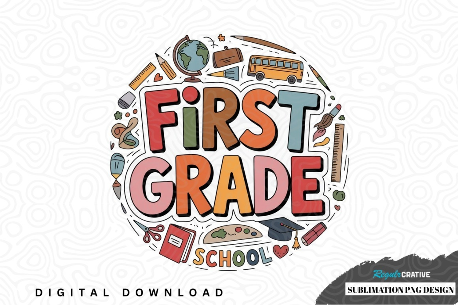 First grade school sublimation png design was created by hand and then converted to a digital file.