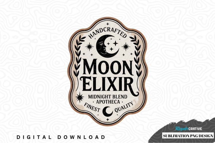 Handcrafted moon elixir midnight blend apotheca sublimation png design was created by hand and then converted to a digital file.
