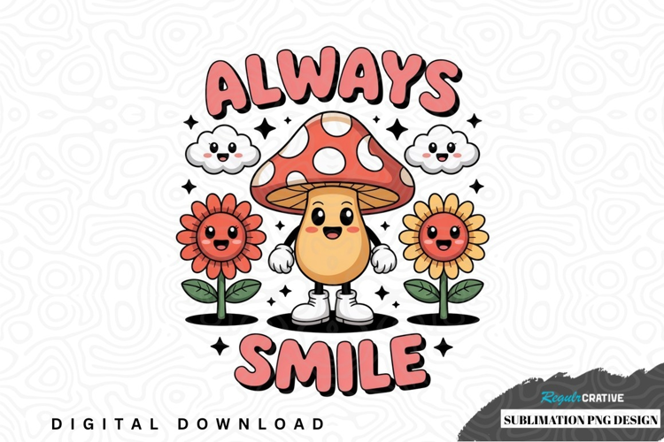 Always smile mushroom sublimation png design