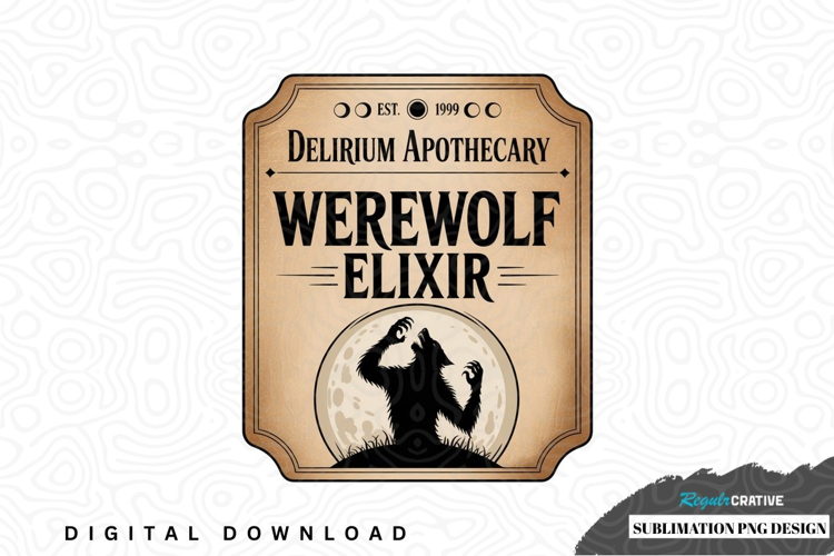 Vintage Label Png Printing Werewolf Full Moon Apothecary Sublimation Design Elixir Howling Werewolf Delirium Apothecary
