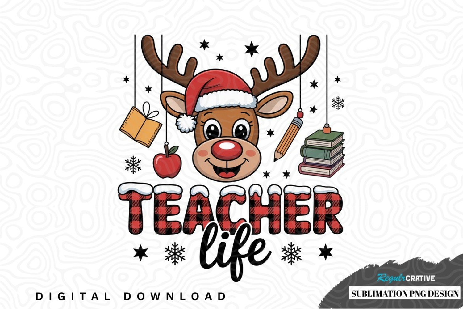 Teacher life christmas reindeer sublimation png design example image 1