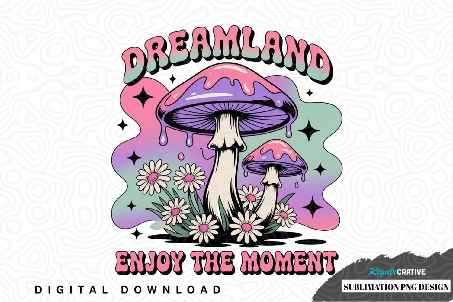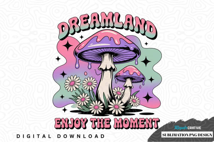 Dreamland mushroom sublimation png design was created by hand and then converted to a digital file.