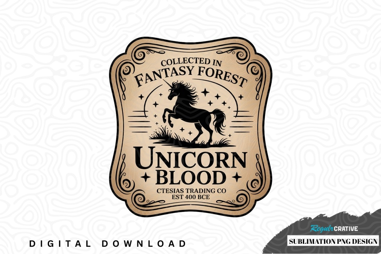 Vintage Label Fantasy Design Forest Png Unicorn Magical Sublimation Fantasy Forest