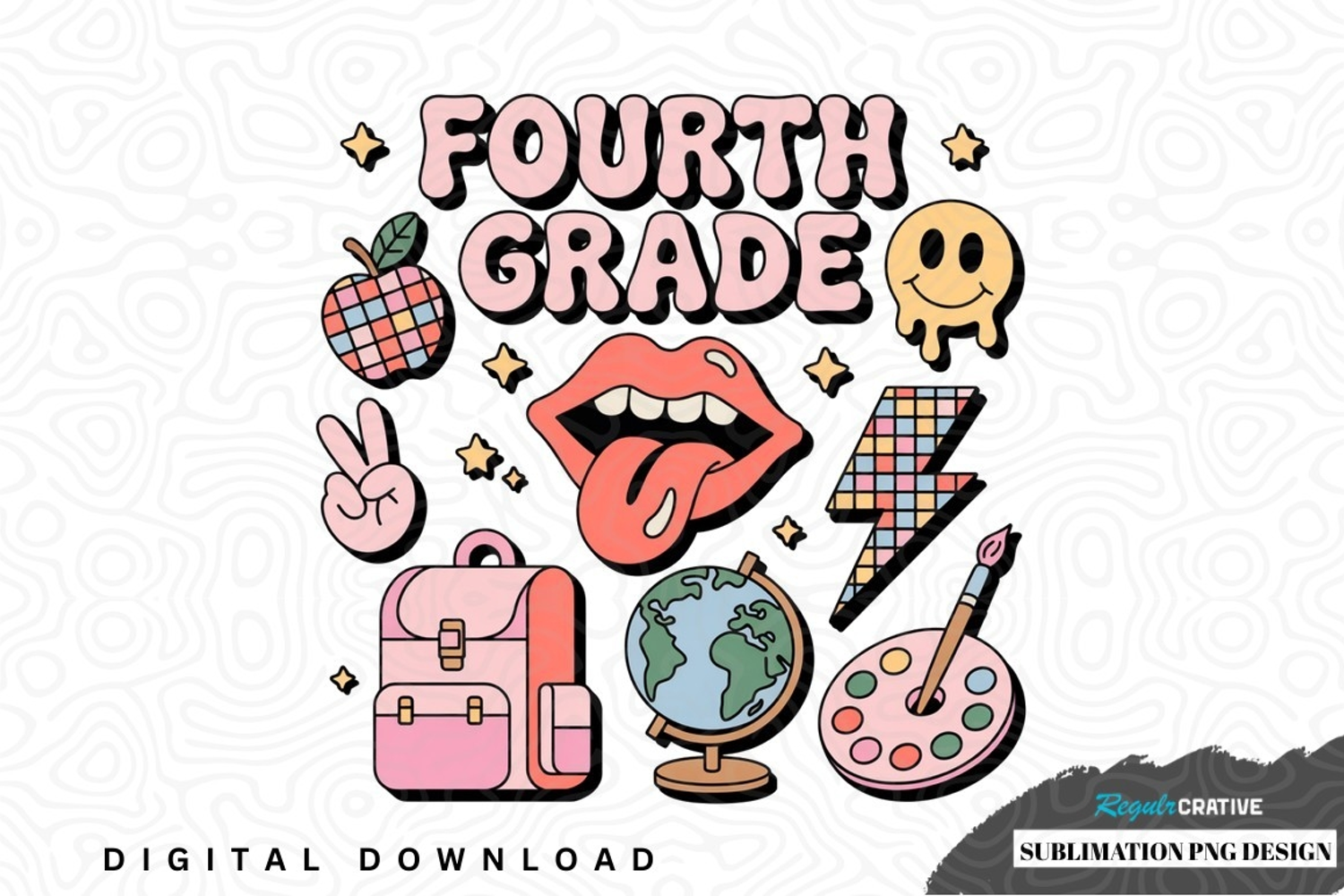Fourth grade sublimation png design was created by hand and then converted to a digital file.