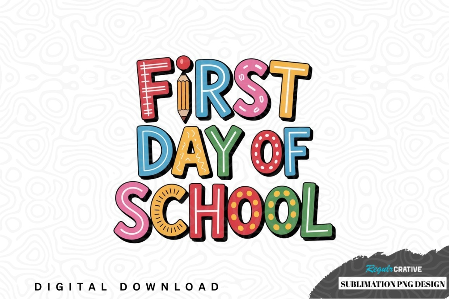 First day of school sublimation png design was created by hand and then converted to a digital file.