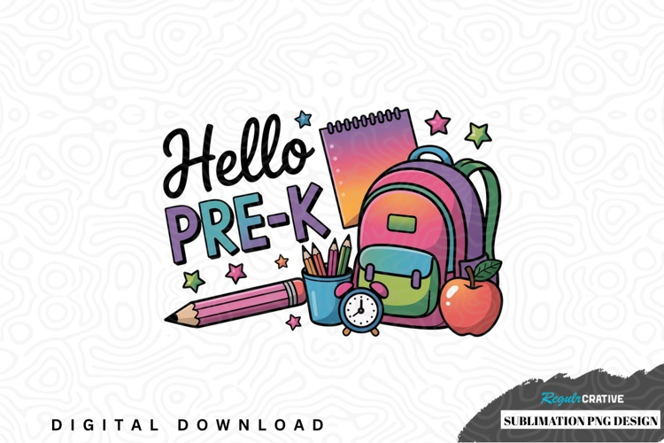 Hello pre-k sublimation png design was created by hand and then converted to a digital file.