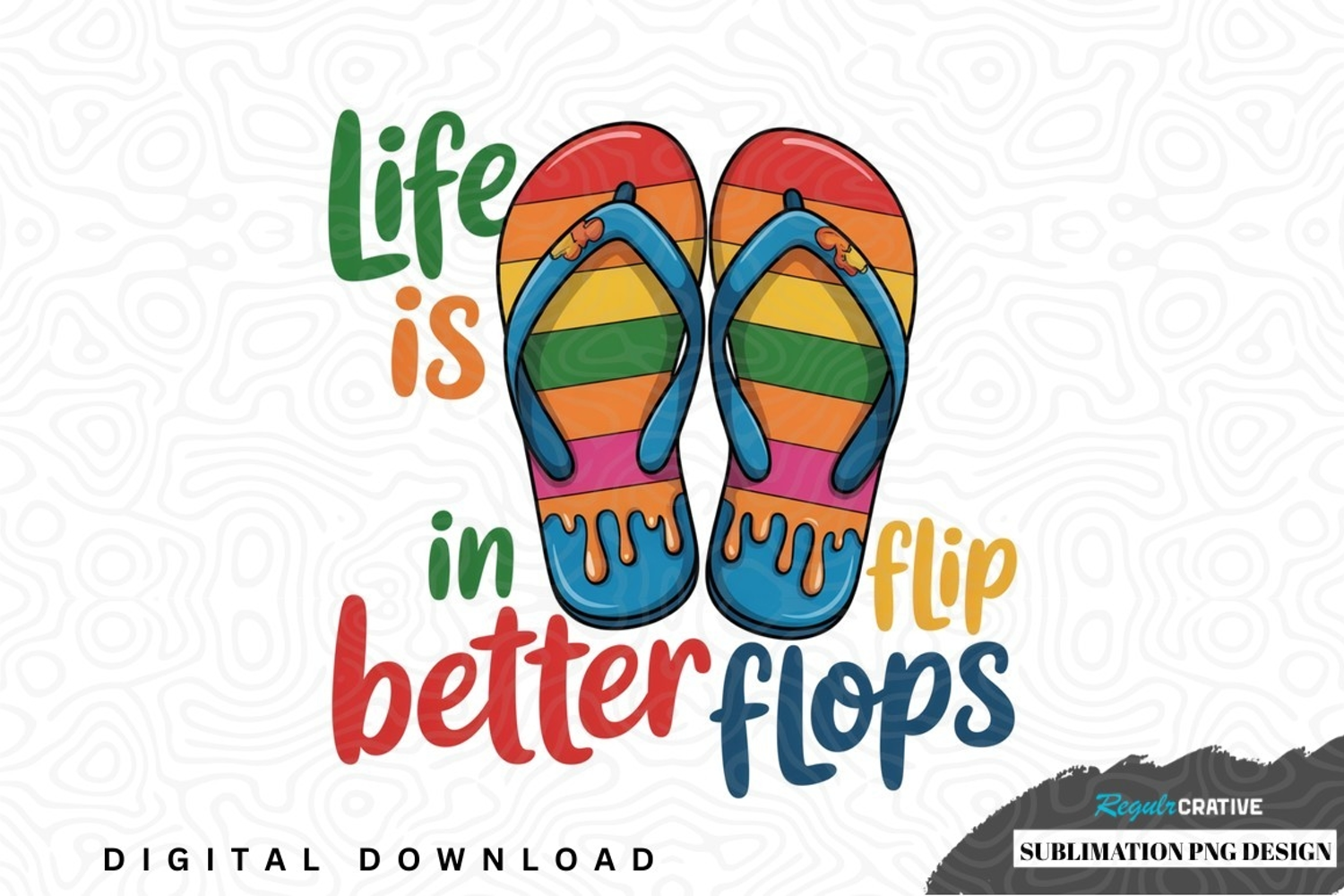 Life is in flip flops sublimation png design was created by hand and then converted to a digital file.