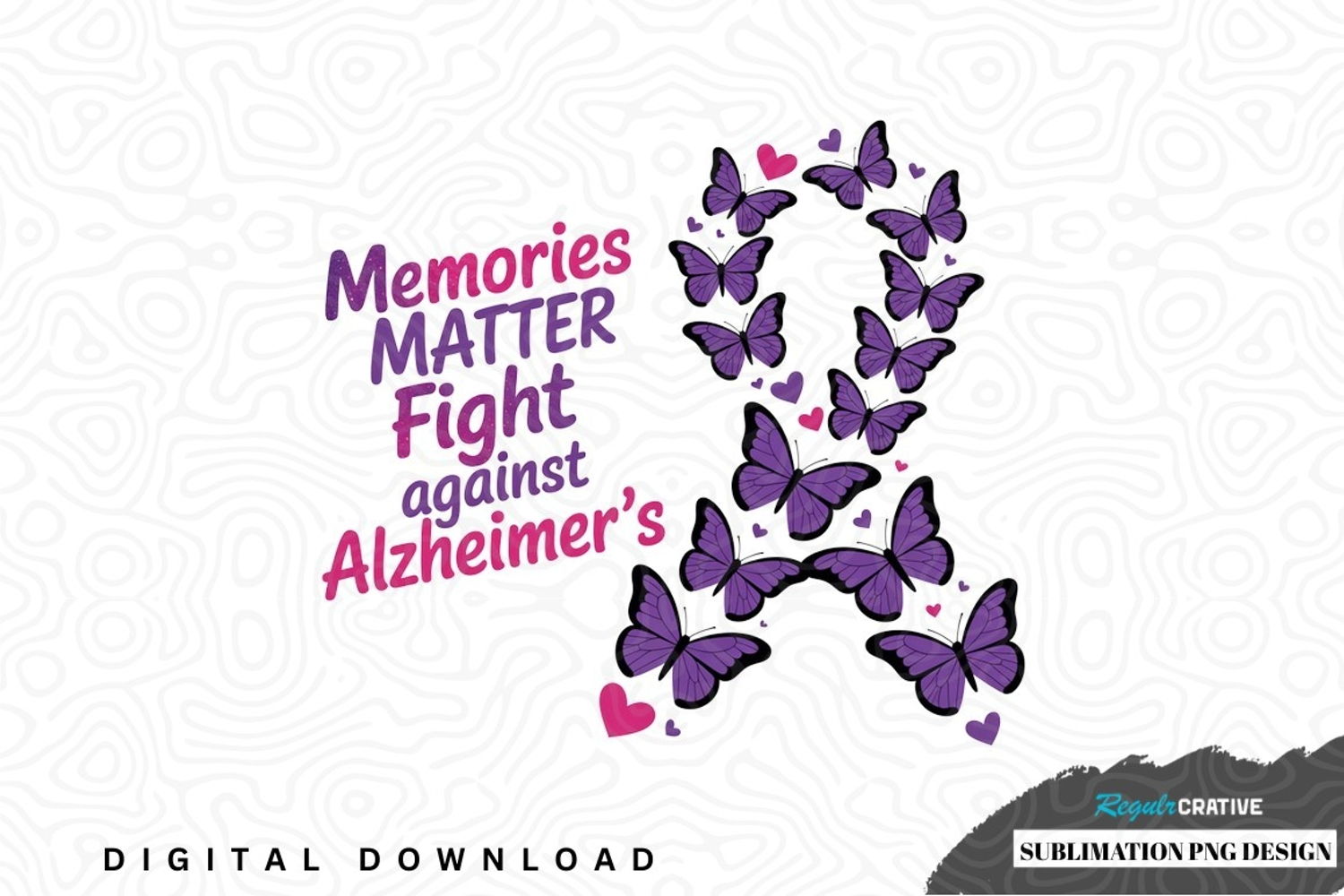 Butterflies Awareness Ribbon Inspirational Quote Sublimation Design Alzheimer's Awareness Purple Ribbon Png Design Memories Matter Support Alzheimer's Fight Against Alzheimer's