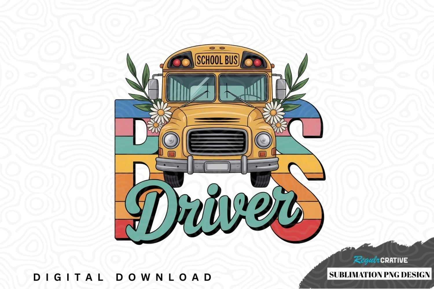 School bus driver sublimation png design was created by hand and then converted to a digital file.