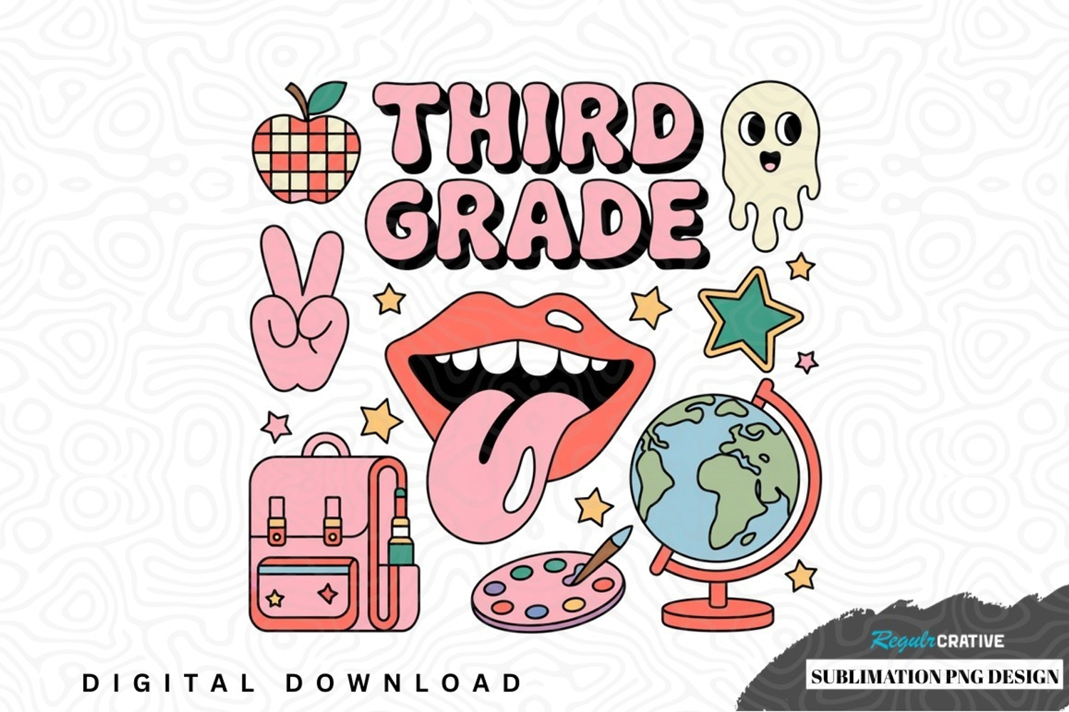 Third grade sublimation png design was created by hand and then converted to a digital file.