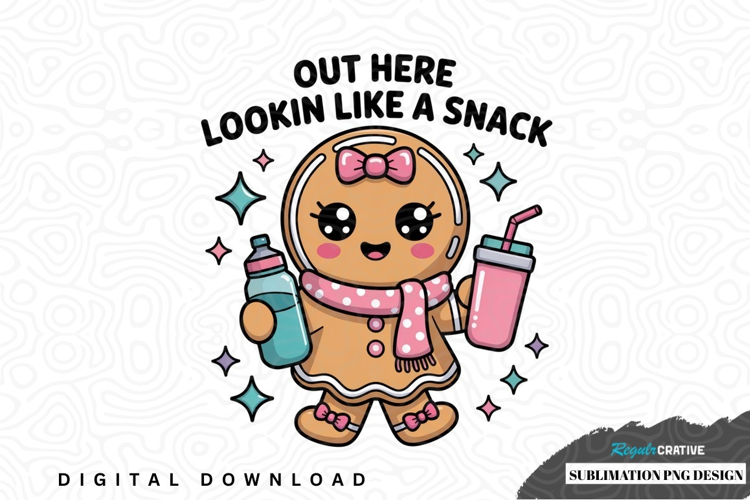Out here lookin like a snack gingerbread girl sublimation png design was created by hand and then converted to a digital file.