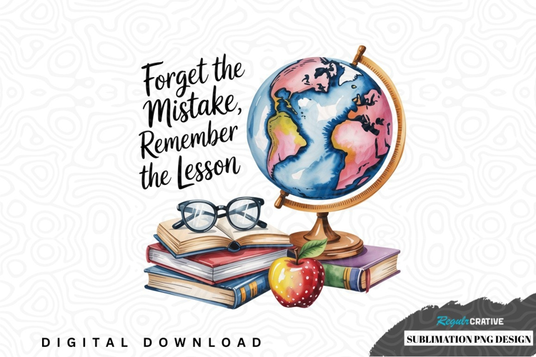 Apple Glasses Inspiration Globe Education Books Motivational Quote Sublimation Design Remember The Lesson Forget The Mistake
