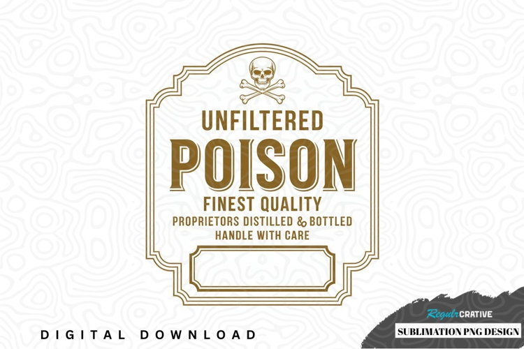 Vintage poison label sublimation png design was created by hand and then converted to a digital file.