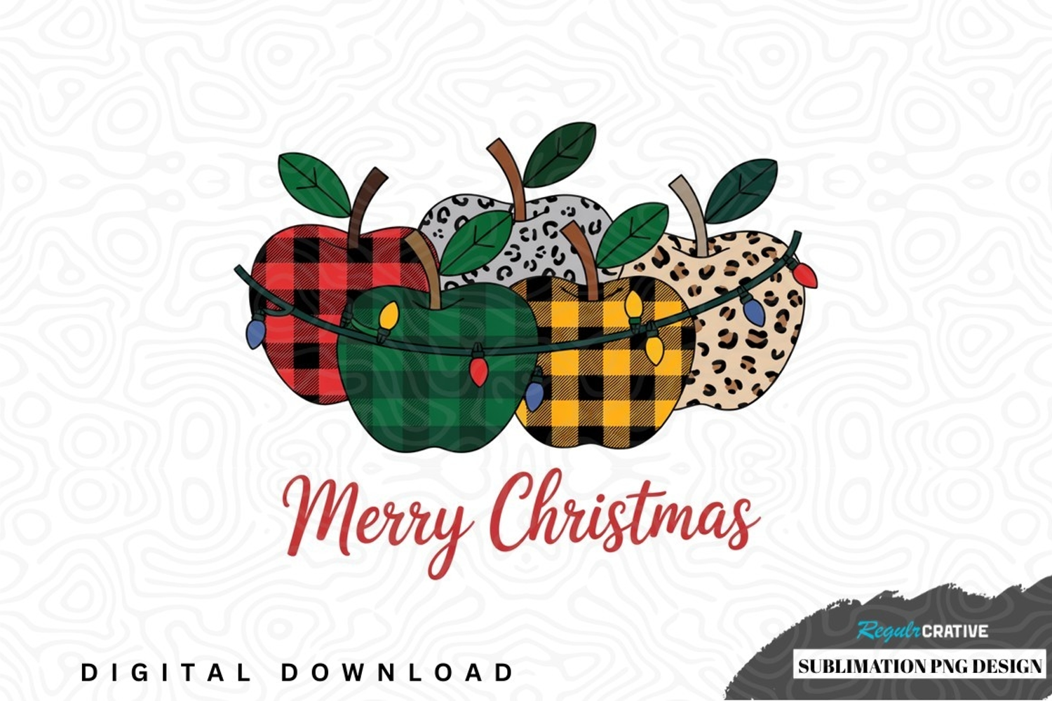 Christmas-themed apple sublimation png design was created by hand and then converted to a digital file.