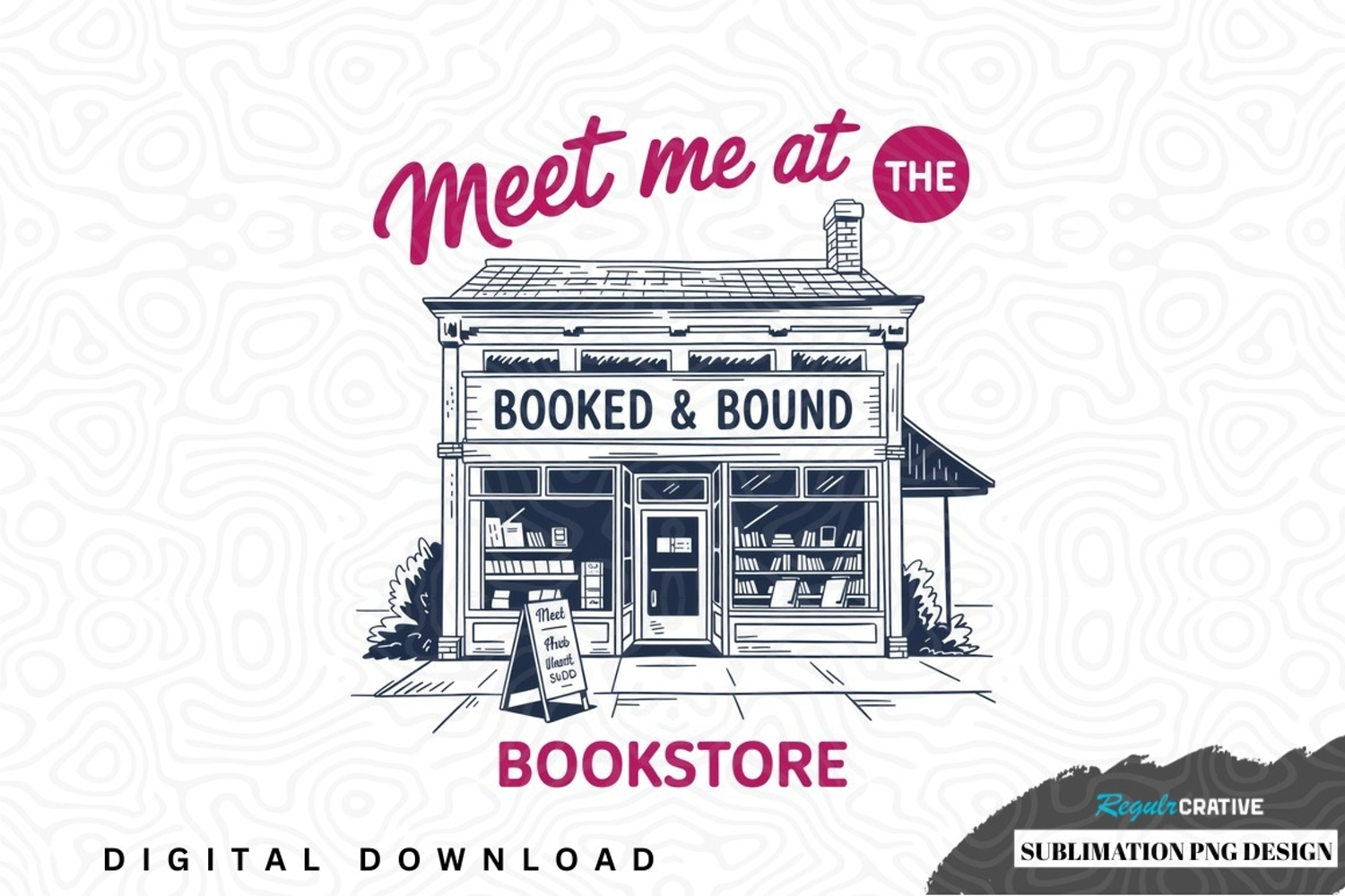 Meet me at the bookstore sublimation png design was created by hand and then converted to a digital file.