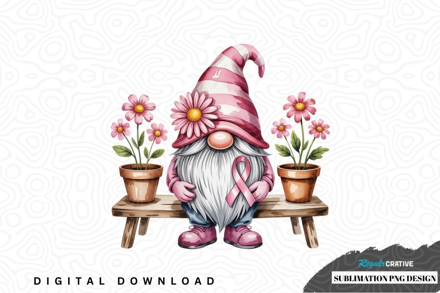 Pink Flowers Pots Digital Download Awareness Ribbon Breast Cancer Awareness Gnome Gnome Illustration Sublimation Design Pink Hat