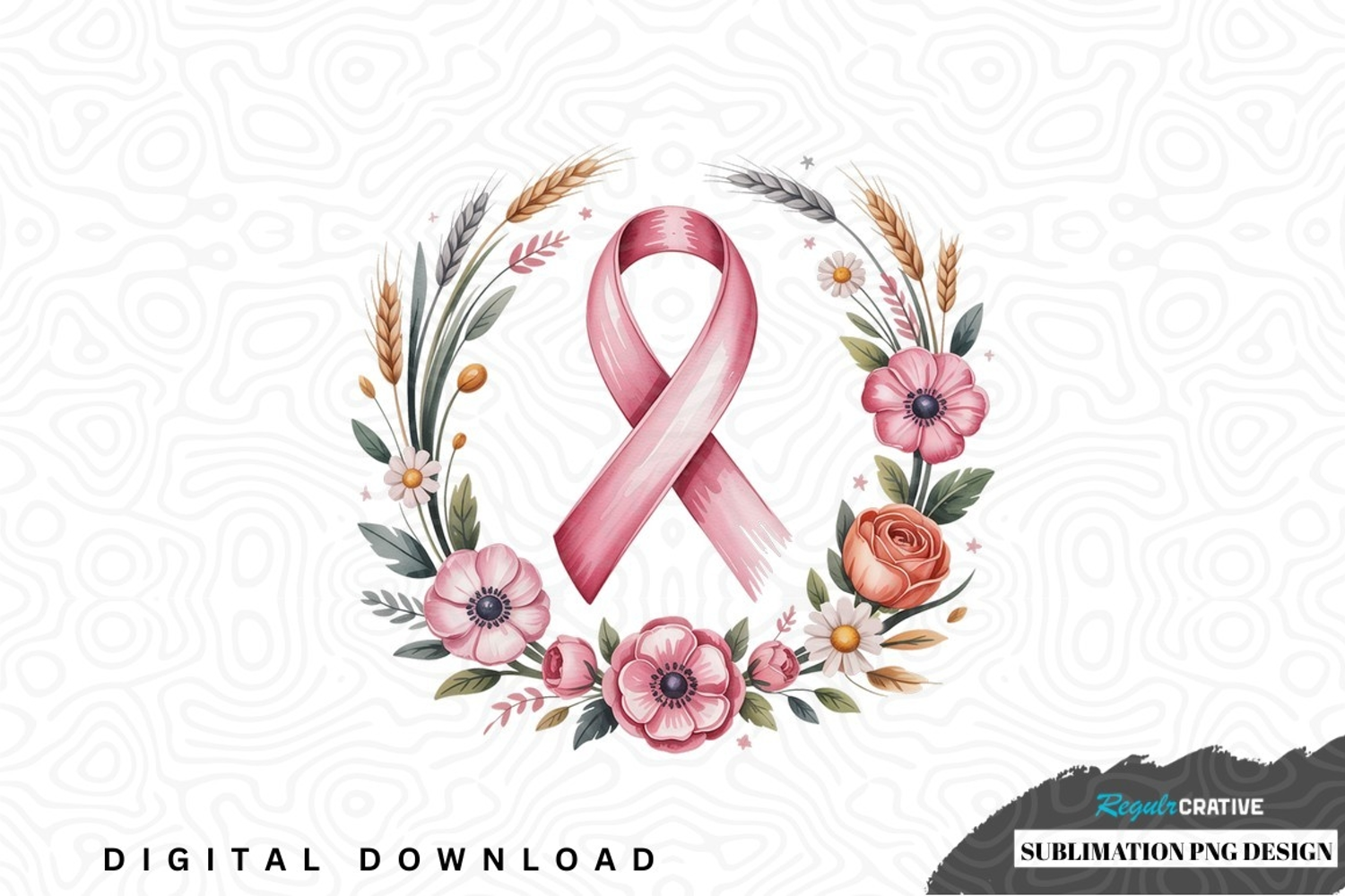 Flowers Floral Wreath Pink Ribbon Wreath Design Awareness Ribbon Breast Cancer Awareness Sublimation Design Pink Ribbon Design Awareness Symbol Breast Cancer Symbol