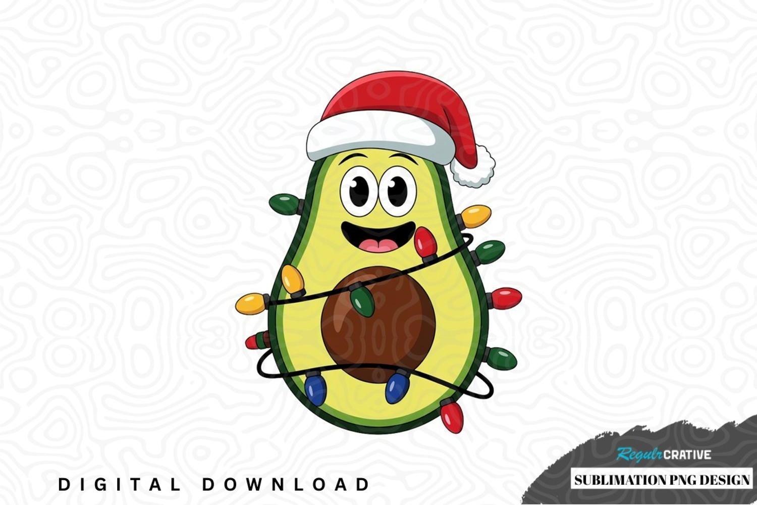 Christmas avocado sublimation png design was created by hand and then converted to a digital file.