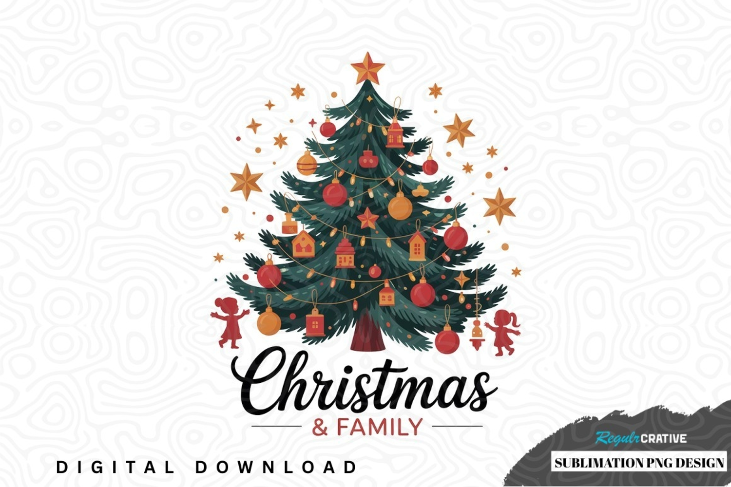 Children Family Ornaments Holiday Christmas Christmas Tree Stars Festive Sublimation Png Design