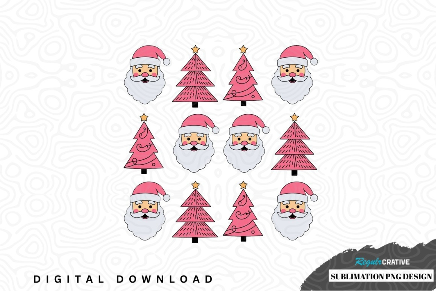 Christmas santa claus and tree sublimation png design was created by hand and then converted to a digital file.