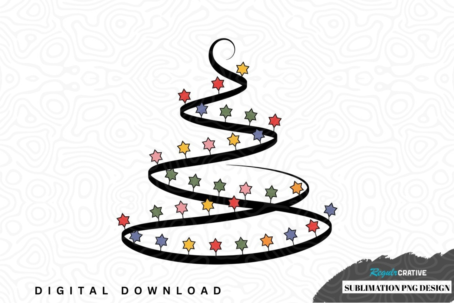 Holiday Png Christmas Tree Christmas Decoration T-shirt Design Mug Design Gift Item Sublimation Design Spiral Tree Multicolored Stars
