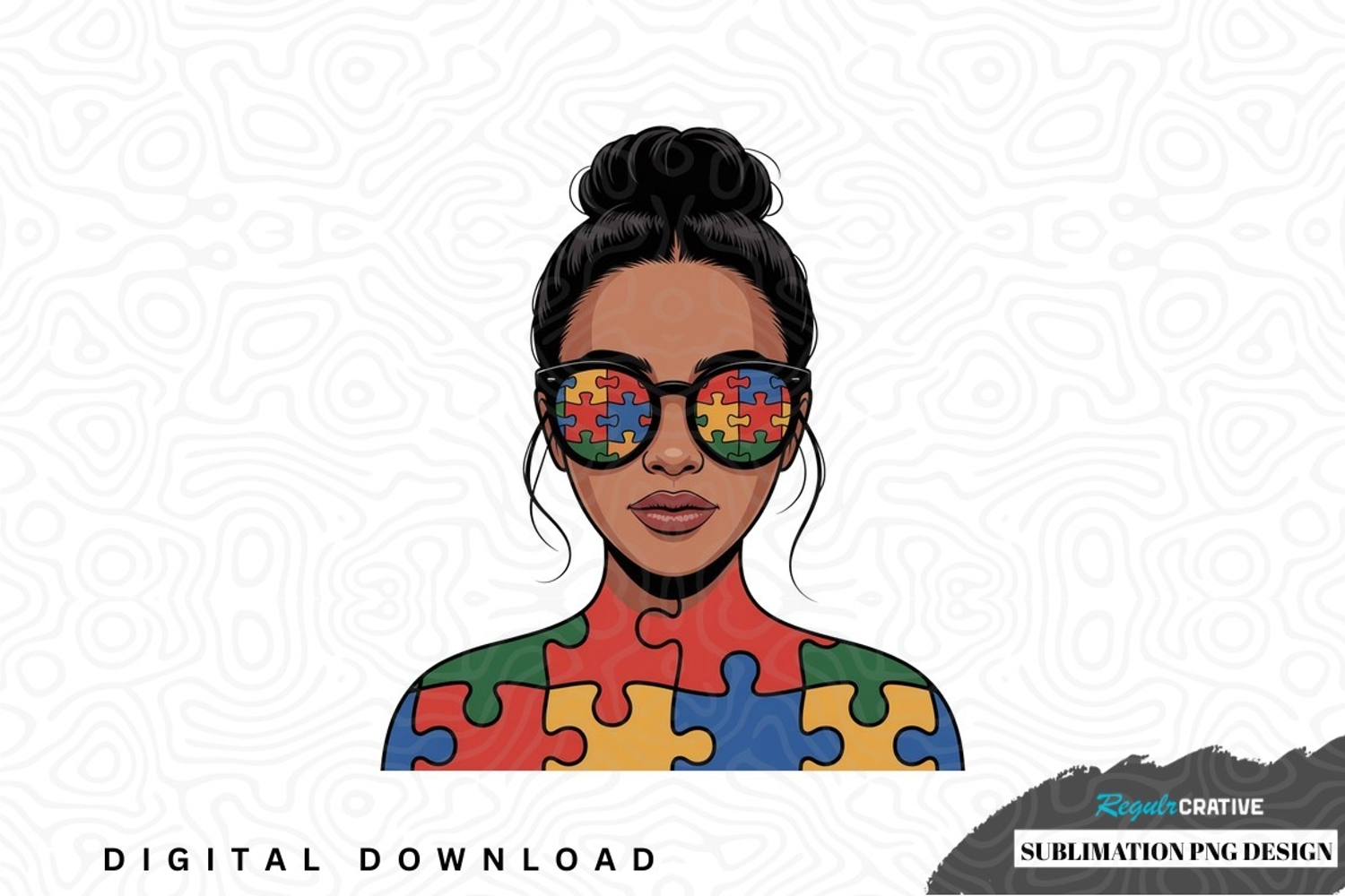 Digital Art Sunglasses Awareness Ribbon Puzzle Piece Illustration Art Autism Awareness Colorful Design Sublimation Png Autism Acceptance Autism Support