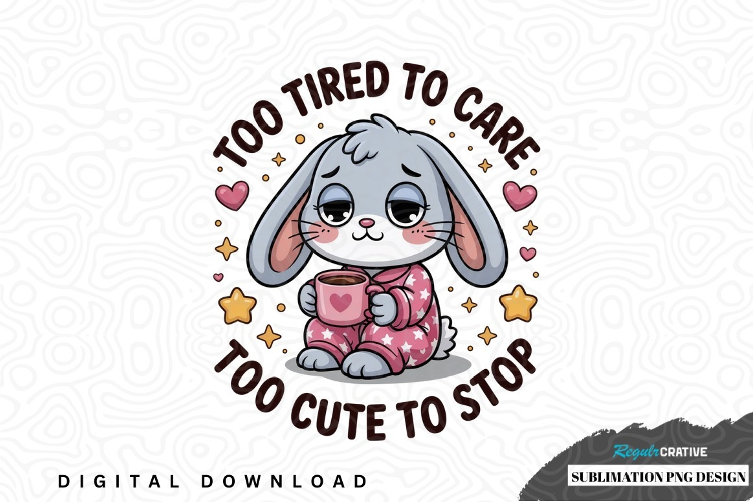 Too tired to care, too cute to stop bunny sublimation png example image 1
