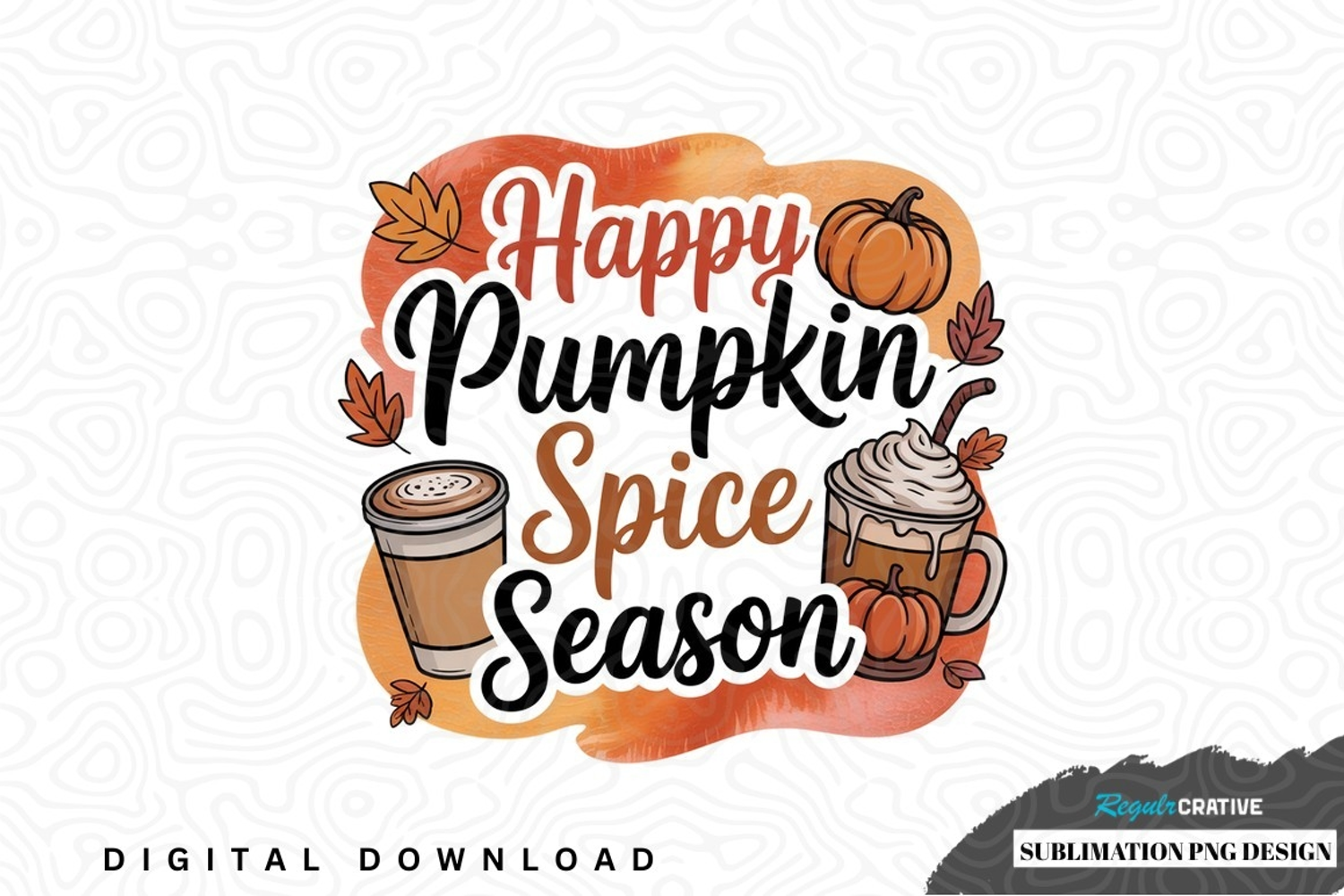Happy pumpkin spice season sublimation png design was created by hand and then converted to a digital file.