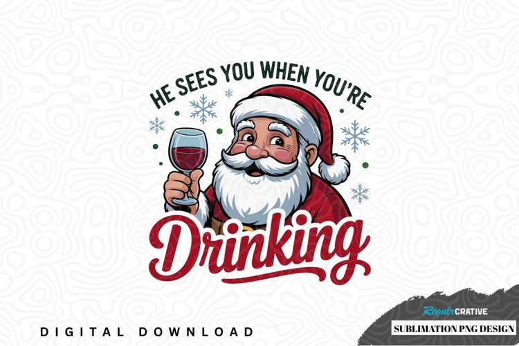 Funny santa claus drinking sublimation png design was created by hand and then converted to a digital file.