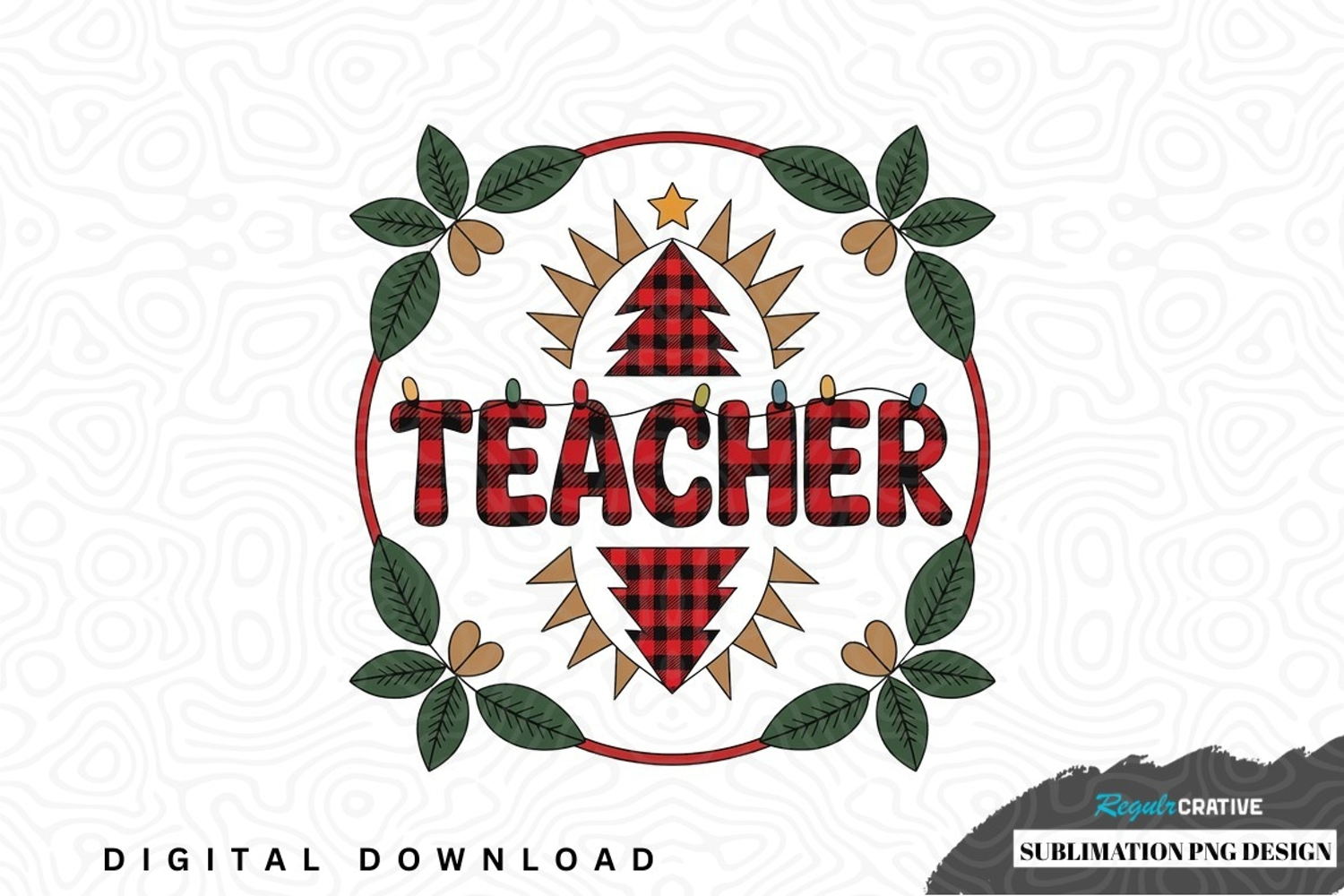 Holiday Christmas Leaves Christmas Tree Teacher Teacher Appreciation Plaid Sublimation Gift Design Png Design