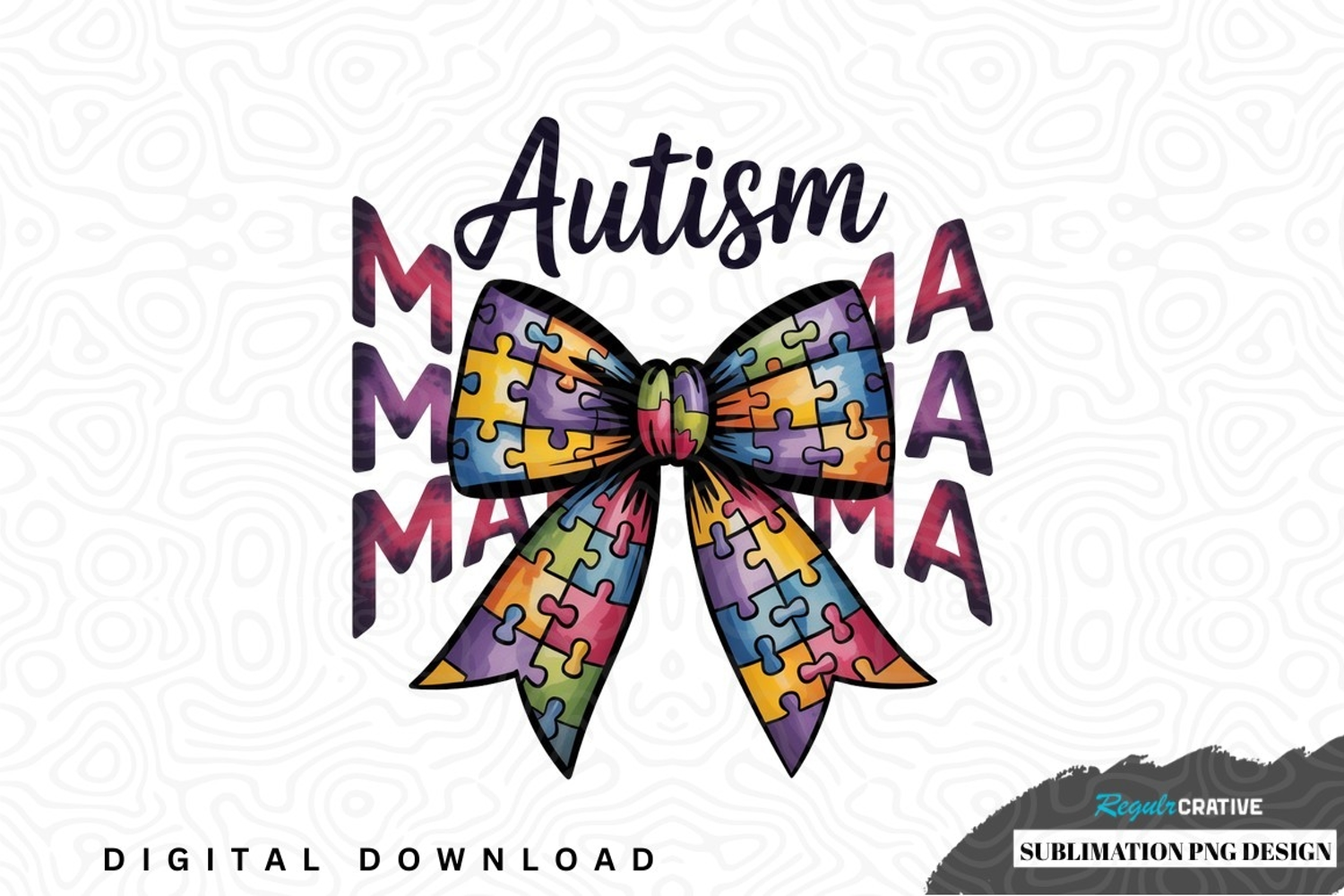Symbol Colorful Bow Support Awareness Autism Puzzle Piece Mama Sublimation Design Autism Awareness Month