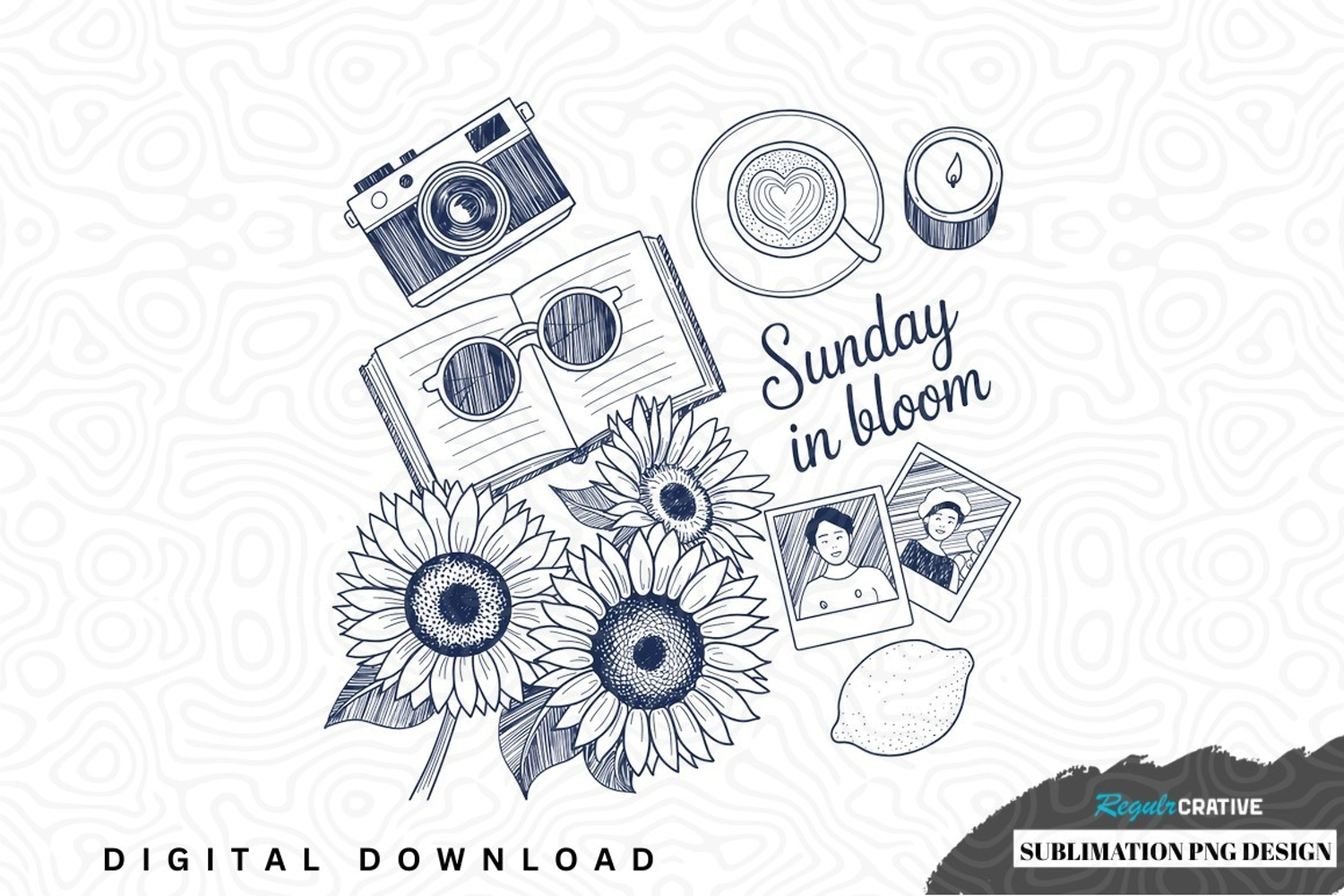 Sunday in bloom sublimation png design was created by hand and then converted to a digital file.