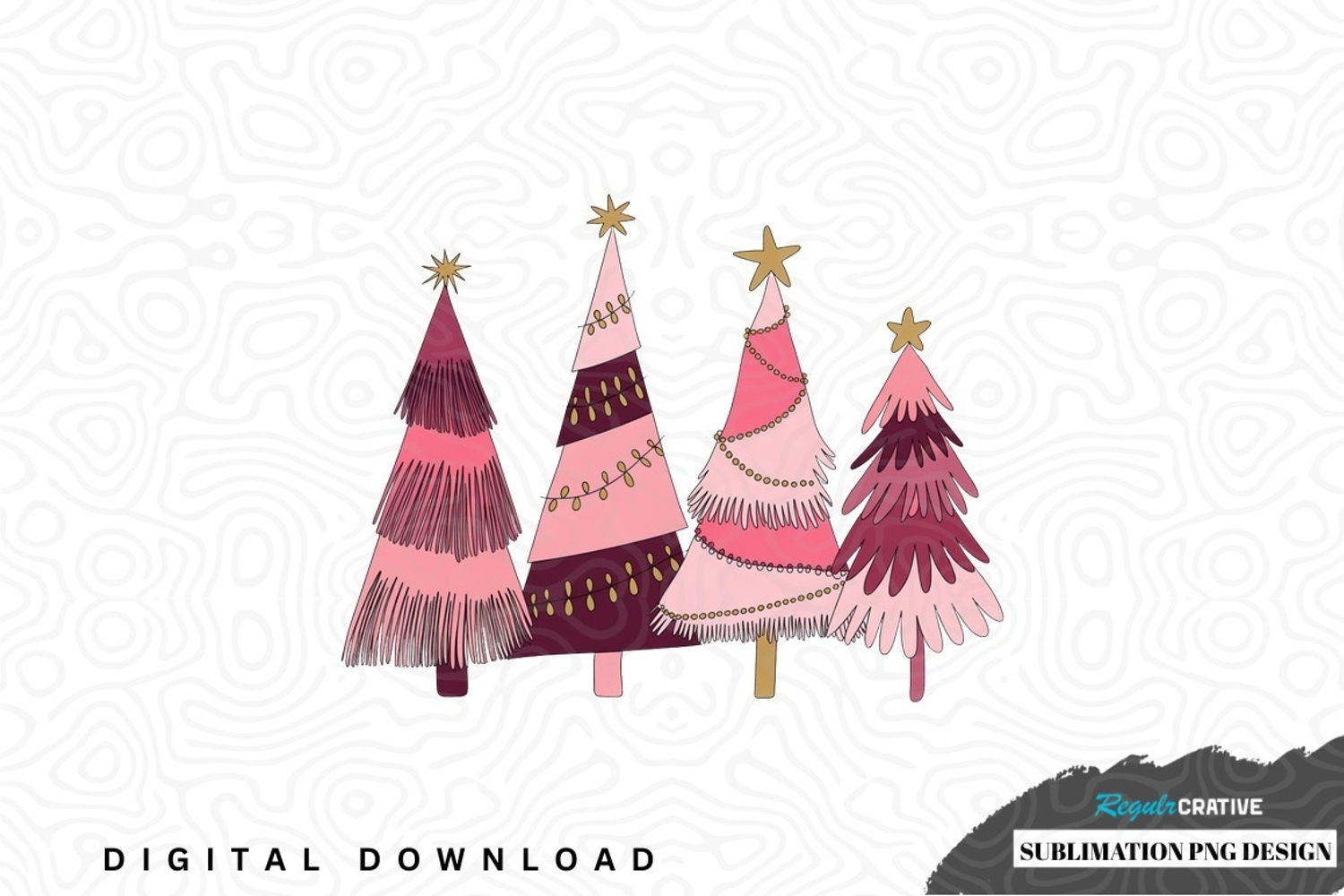 Whimsical Holiday Pink Christmas Purple String Lights Festive Christmas Trees Sublimation Png Design