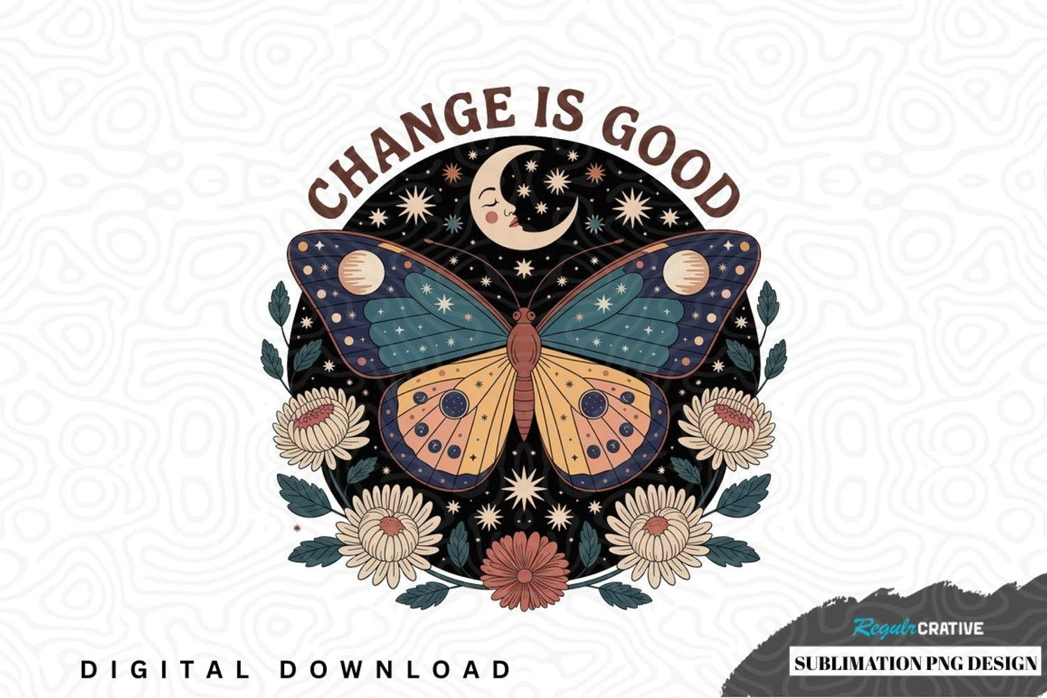 Nature Artistic Flowers Butterfly Inspirational Positive Crescent Moon Transformation Sublimation Design Change Is Good