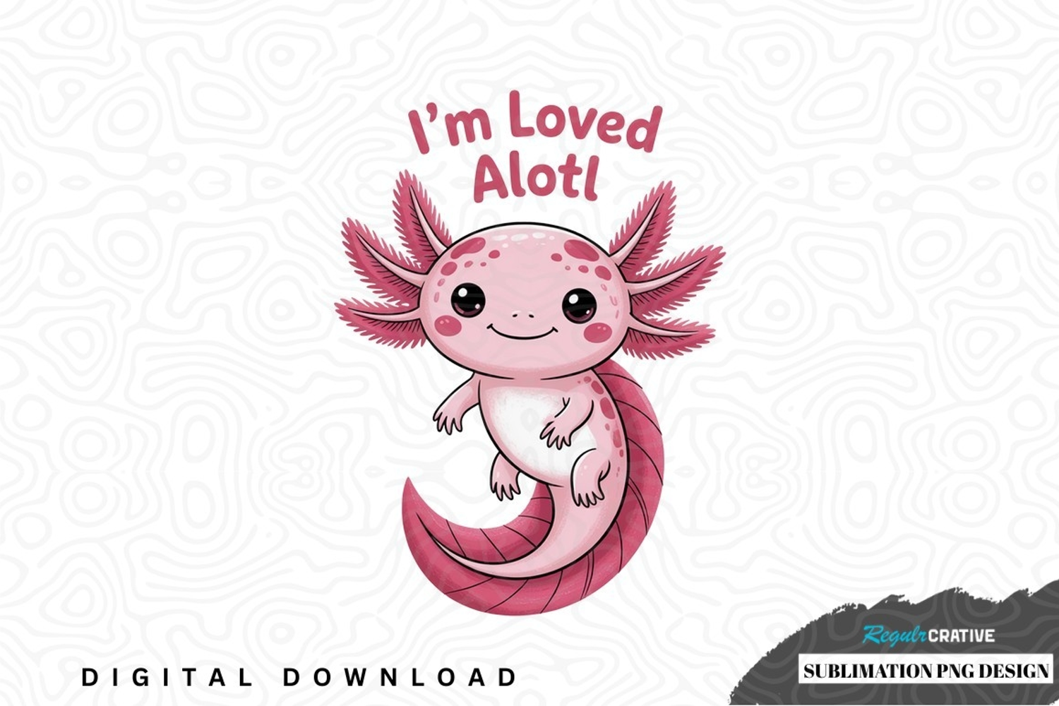 I'm loved alot! - cute axolotl sublimation png design was created by hand and then converted to a digital file.