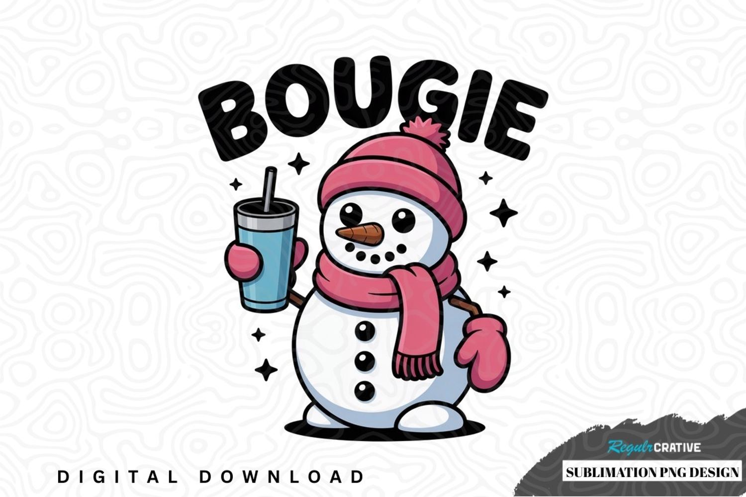 Bougie snowman sublimation png design was created by hand and then converted to a digital file.