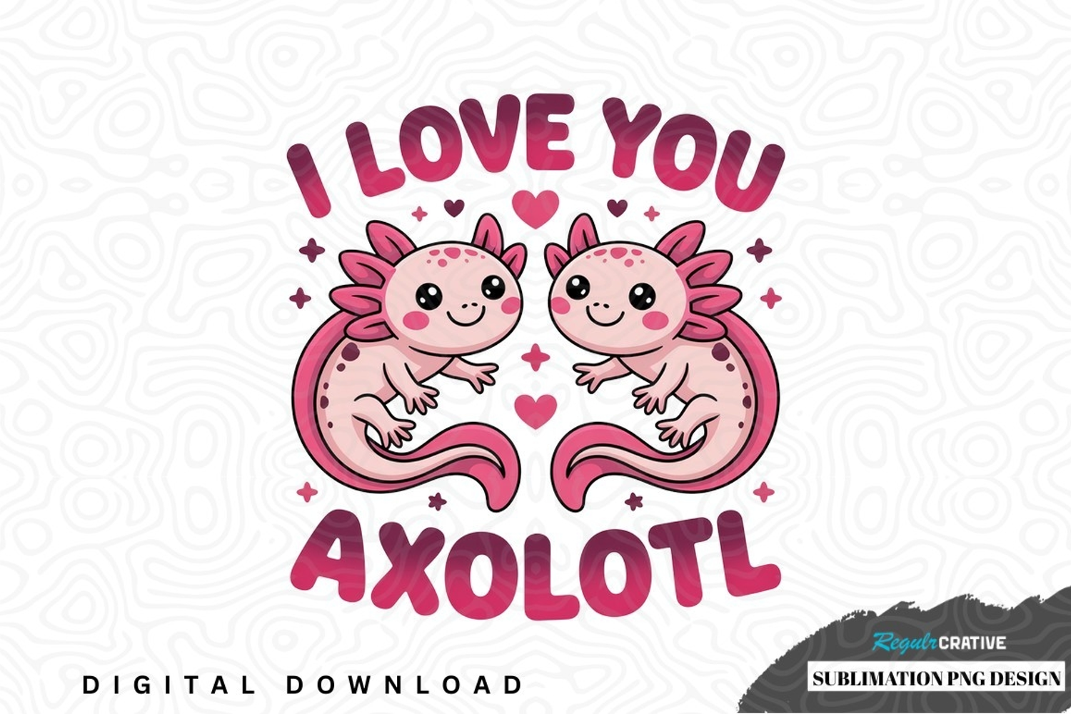 Illustration Romantic Love Png Valentine's Day I Love You Sublimation Design Axolotl Cute Axolotl Heartwarming