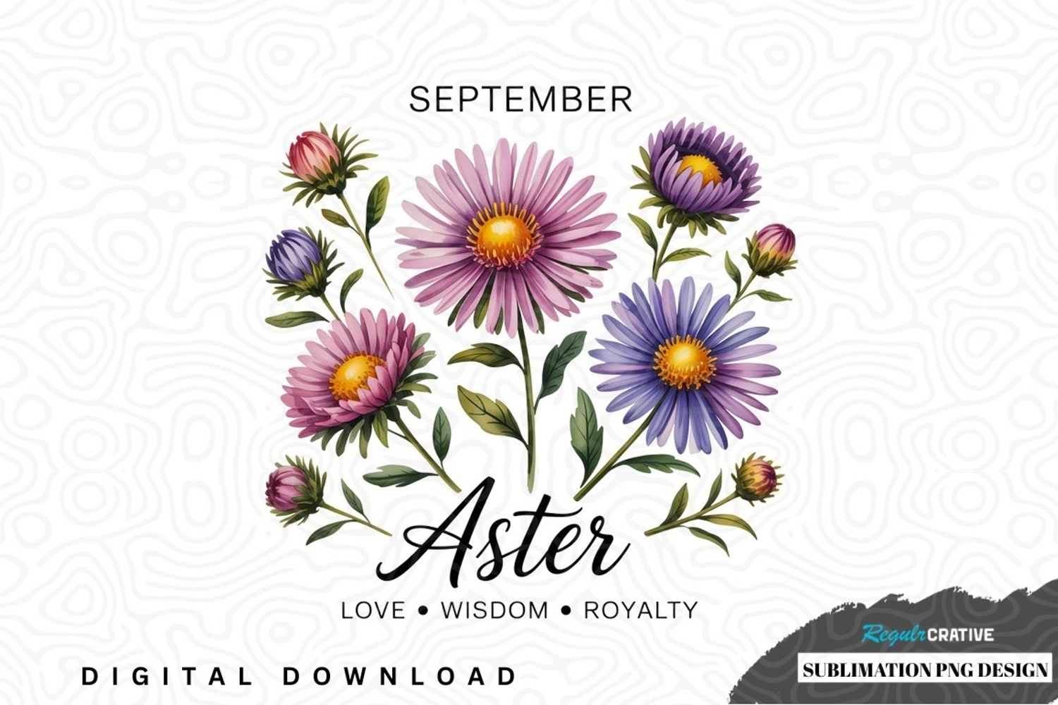 September aster birth flower sublimation png design was created by hand and then converted to a digital file.