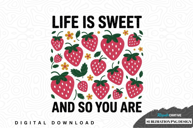 Flowers Strawberries Sweet Life Positive Quote Inspirational Quote Life Is Sweet Strawberry Design Sublimation Png Custom Print Cheerful Design