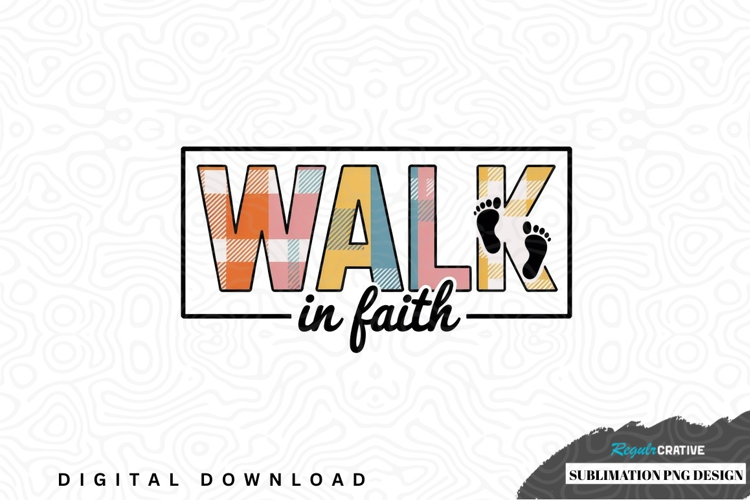 Walk in faith sublimation png design was created by hand and then converted to a digital file.