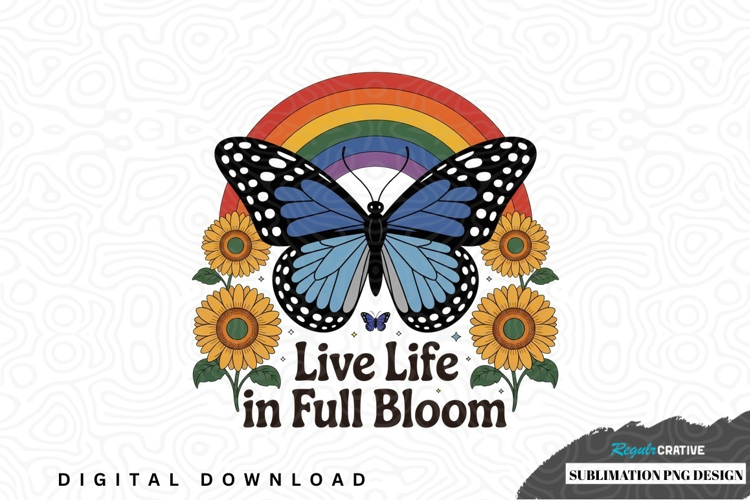 Nature Colorful Butterfly Rainbow Inspirational Motivational Sublimation Live Life In Full Bloom Png Design Sunflowers