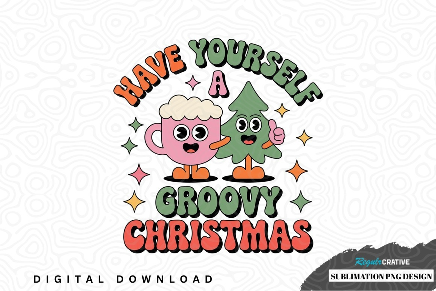 Groovy christmas sublimation png design was created by hand and then converted to a digital file.