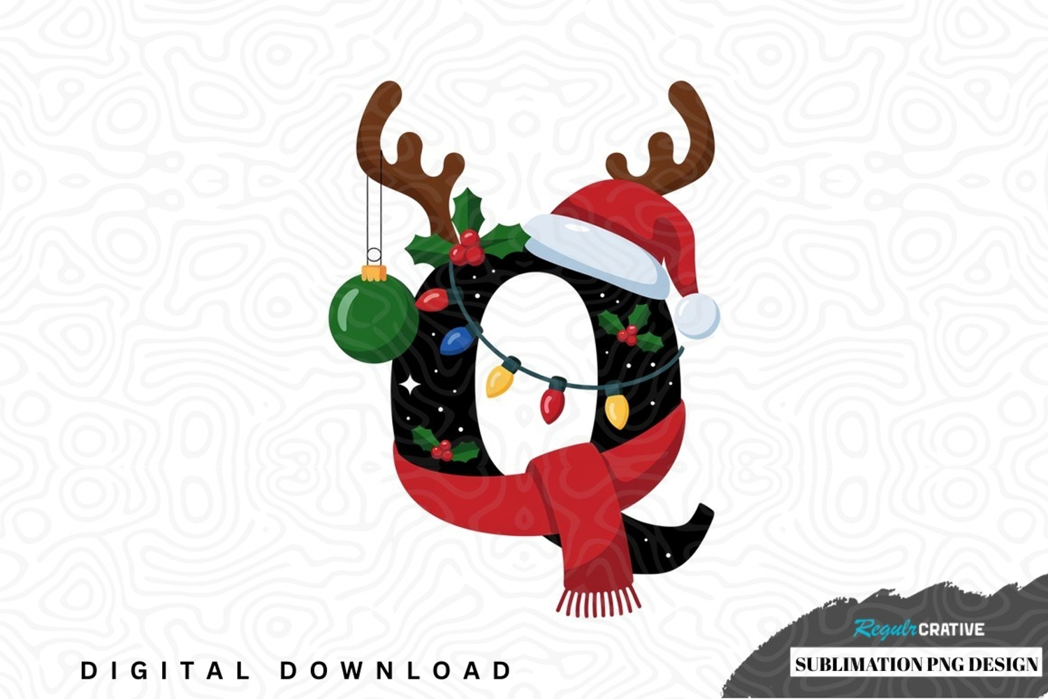 Festive reindeer letter q sublimation png design example image 1