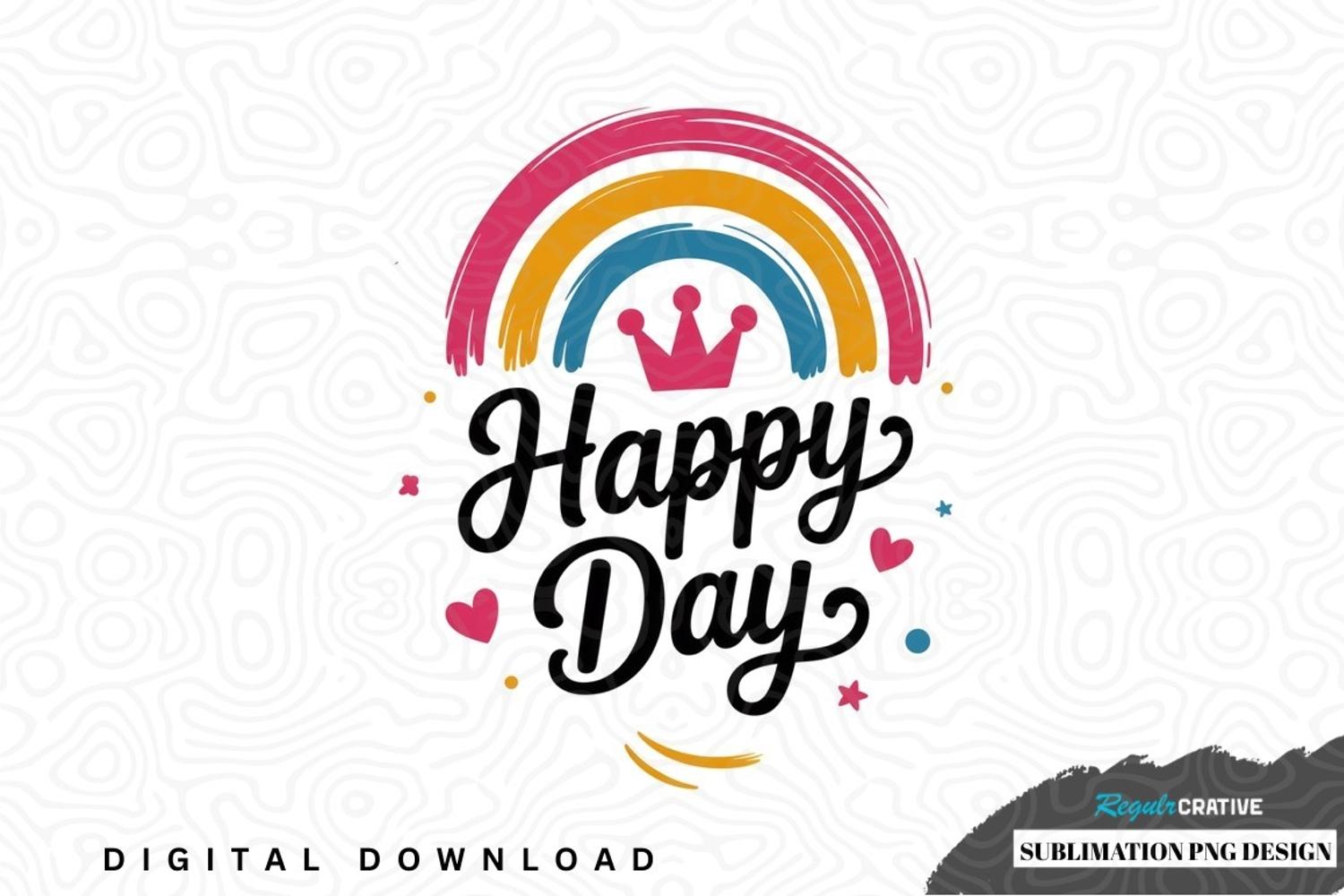 Happy day rainbow crown sublimation png design was created by hand and then converted to a digital file.