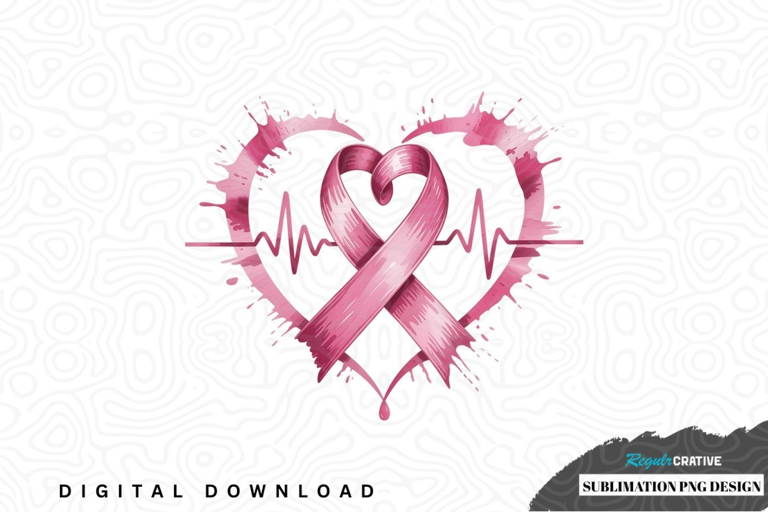 Heart Heartbeat Digital Art Pink Ribbon Awareness Ribbon Breast Cancer Awareness Sublimation Design Breast Cancer Support Png Design Health Awareness