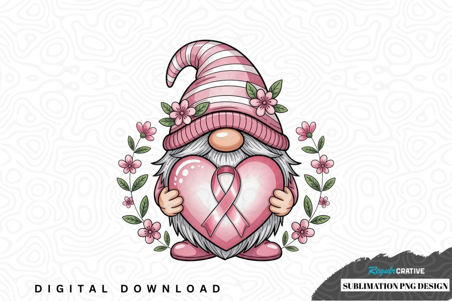 Pink gnome with awareness ribbon heart sublimation png example image 1